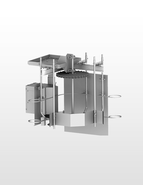 Le système de décroche pattes permet le décrochage des pattes du convoyeur. Cet équipement est placé sur le convoyeur après l’étape du coupe pattes.