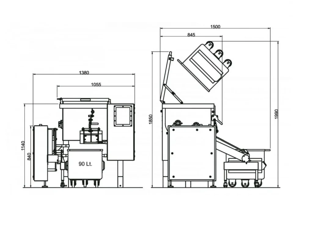 Grâce à sa conception soignée , le lavage et la désinfection sont rapides et efficaces. Un chargeur hydraulique pour chariots de 90 litres peut également être installé ultérieurement, même après l’achat.