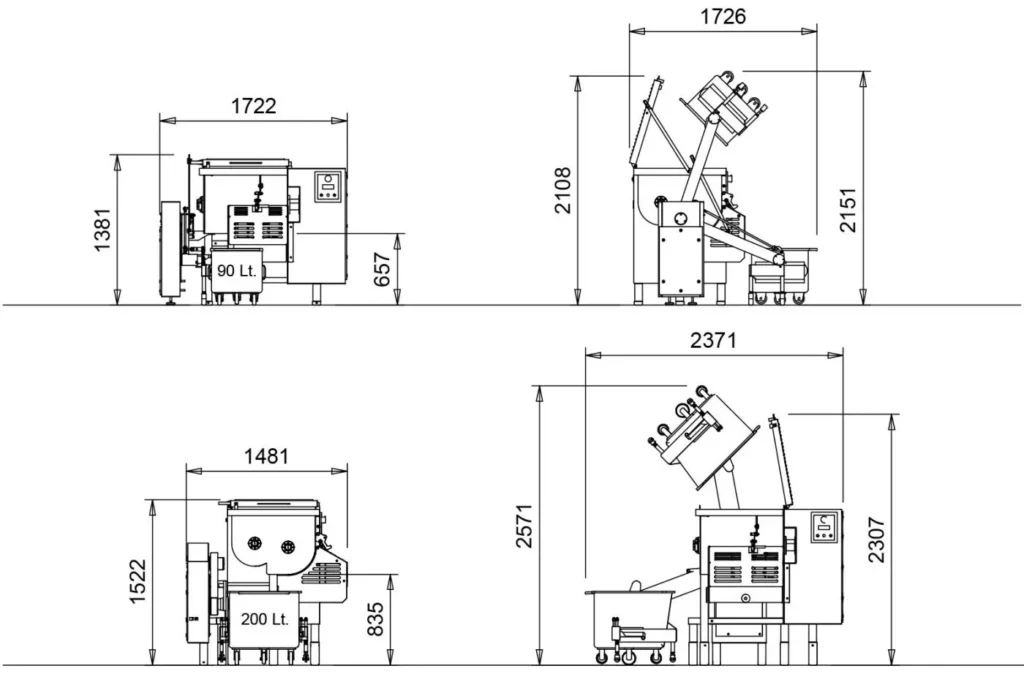Le mélangeur K230 est idéal pour les petites et moyennes entreprises , équipé d’une cuve de 300 litres permettant un mélange rapide et efficace de viande et de produits conservés pour la production de salami, de hamburgers, de salades et de divers plats préparés.